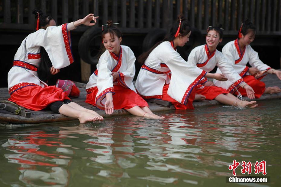 常州重現(xiàn)上巳節(jié)古風(fēng) 漢服美女“曲水流觴”