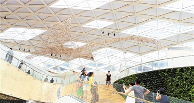 長20米,重300公斤,一件由40個(gè)部件構(gòu)成的、形如飛鳥的大型裝置作品懸掛在新近開業(yè)的華潤萬象天地穹頂。這是日本藝術(shù)家北山善夫?yàn)槿f象天地量身打造的藝術(shù)作品《無形》,特別值得一提的是,如此巨大的作品,是由藝術(shù)家用竹枝和紙,耗時(shí)數(shù)月純手工制作完成。北山善夫說:“我生命的意義不在于作品本身,而是在制作這些作品的過程中?!?/p>