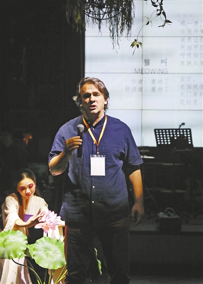 波黑詩人塞納丁朗誦自己的作品。