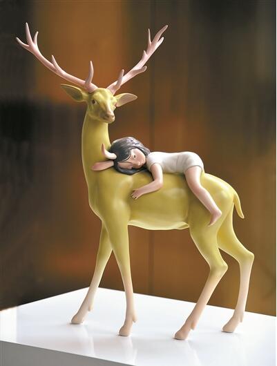 賈曉鷗的作品《悅悅》放在展廳中央格外引人注目:一位純潔的天使少女,輕輕踮起腳尖,昂首閉目,擁抱自己,臉上洋溢著幸福的甜美和自信的笑容,給人們帶來無限的想象力。賈曉鷗在現(xiàn)場分享了悅悅的設計理念:以天使少女為形象的悅悅代表著喜悅,包含著童話的美感,又攜帶著對未來的憧憬與希冀。白色調(diào)代表著小女孩獨有的純真、善良與純粹,讓人在無論何時觀賞都能感受到安靜與優(yōu)雅。干凈利落的短發(fā),在夢幻的氛圍中凸顯出少女的蓬勃朝氣與幸福甜美。