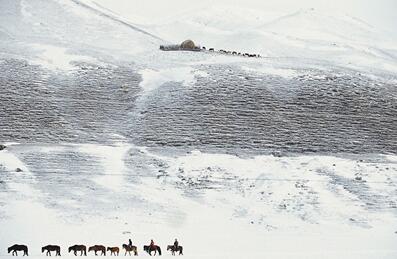 ▲王琛攝于2006年2月,新疆天山貢乃斯冬季天山牧場。