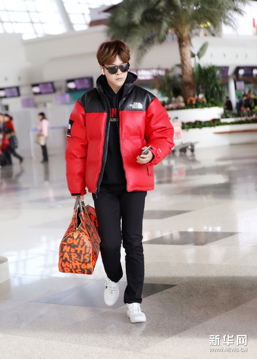 近日,徐海喬亮相機(jī)場(chǎng),身穿黑色衛(wèi)衣搭配同色系休閑褲,外搭一件紅色羽絨服,保暖又個(gè)性。
