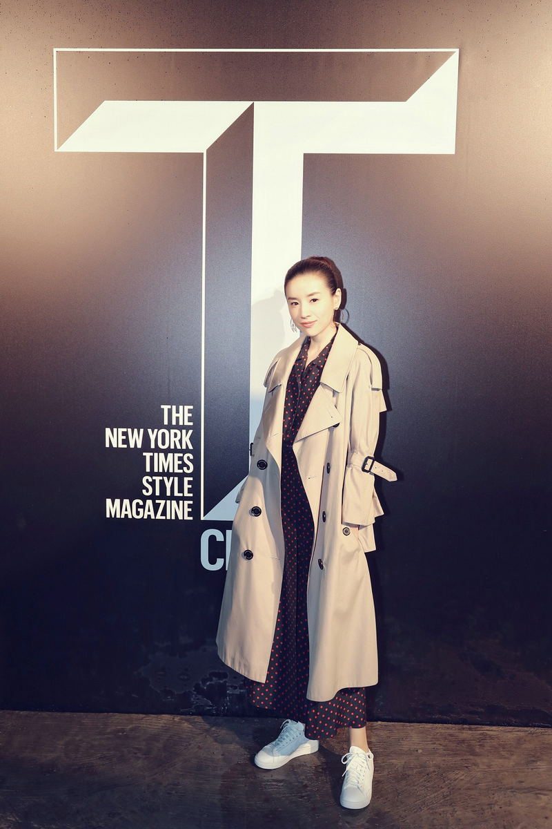 董潔亮相時(shí)尚派對(duì) 帥氣風(fēng)衣瀟灑利落
