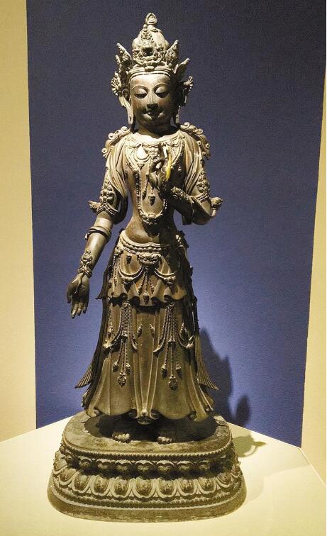 ▲明鎏金銅蓮花手菩薩像。