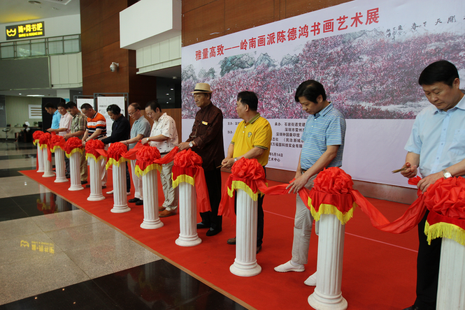 深圳新聞網(wǎng)訊(記者周錦春 通訊員孫善文)5月6日,雷州籍嶺南畫派青年畫家陳德鴻書畫藝術(shù)展在寶安區(qū)石巖文化藝術(shù)中心舉行,這是陳德鴻舉辦的第三十五場個人作品展,也是其在深圳地區(qū)舉辦的第七場。 本次畫展由寶安區(qū)美術(shù)家協(xié)會主辦,石巖街道黨建服務(wù)中心、深圳市雷州商承辦,廣東電視臺、深圳市湛江商會、深圳鐘國康印館、《書法報》深圳站、《伶仃洋》雜志社等單位協(xié)辦,展出了陳德鴻近期創(chuàng)作的60幅書畫作品, 200多名書畫名家和書法愛好者到場欣賞、祝賀,廣東電視臺及深圳多家媒體現(xiàn)場采訪報道。 ? “雅量高致”為陳德鴻在藝術(shù)上取得相當(dāng)突顯的成績后,其大學(xué)導(dǎo)師、書畫名家周彥生先生所題贈,其意為氣度寬宏,情致高雅,雅正不俗。這四個字也成為本次展覽的主題。 嶺南畫派成立于上世紀(jì)三十年代,秉承“折衷中外,融合古今”這一宗旨,不但保留了屬于自己的藝術(shù)風(fēng)格及繪畫理念,還將至適應(yīng)時代發(fā)展,創(chuàng)制出有時代精神、有地方特色、氣氛酣暢熱烈、筆墨勁爽豪縱、色彩鮮艷明亮、水墨淋漓、暈染柔和勻凈的現(xiàn)代繪畫新格局。 陳德鴻2004年畢業(yè)于廣州美術(shù)學(xué)院。求學(xué)期間,得到了關(guān)山月、黎雄才、陳金章、周彥生、林豐俗、劉書民等嶺南名家的指導(dǎo),從而為今日的異彩奠定了堅實的基礎(chǔ)。在本科時期又直接受教于李勁堃老師、張彥老師。畢業(yè)后,他一直住在廣州美術(shù)學(xué)院,跟隨導(dǎo)師們上山下鄉(xiāng)寫生創(chuàng)作,前后整整十年,繪畫水平漸露崢嶸,并得到了導(dǎo)師的喜愛和贊賞。 十多年來,陳德鴻常往云南、山西、河南、廣西、安徽等地寫生,行萬里路,讀萬卷書,十年風(fēng)雨使得他有開拓的眼界來審視自身的繪事。在藝術(shù)的道路上,他不斷地探索著,在大自然間理解傳統(tǒng)繪畫的筆墨結(jié)構(gòu)與自然結(jié)構(gòu)。這種繪畫軌跡,亦是陳德鴻探索時期的痕跡,墨氣輕重有度,使得樸素人生詩意盎然。廣東省宣傳部原副部長胡中梅和區(qū)美術(shù)家協(xié)會主席閻敏在看了畫展后認(rèn)為,陳德鴻的作品畫面布局開合有致,氤氳雅麗,寫出了意境,體現(xiàn)出他對筆墨技法的運用已經(jīng)純熟自如,返璞歸真,其作品意境獨特、功力深厚、構(gòu)圖新穎、集中體現(xiàn)了畫家的自然觀與社會審美意識。