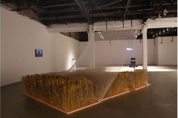 《群落交錯(cuò)帶》包含一個(gè)雙向的敘事結(jié)構(gòu)。兩點(diǎn)之間的空間,不是一條線,而是一片虛空,好像一個(gè)可以不斷開(kāi)合的通風(fēng)口袋,容納無(wú)限精神與想象之力。故事是關(guān)于一個(gè)古怪的航空棲息地,那里盤(pán)旋著一個(gè)進(jìn)化的自然-技術(shù)飛行復(fù)合體(飛行器)。這個(gè)故事還講述著:一個(gè)凡人走進(jìn)自然,結(jié)合植物和電子物件創(chuàng)造出一個(gè)會(huì)飛翔的生命,接著捕捉記錄下這個(gè)新的飛行生物,并將其融入一個(gè)有關(guān)大氣的真實(shí)-虛構(gòu)作品。