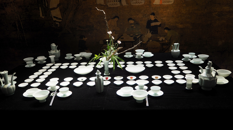 開幕式前,與會領導和嘉賓一同觀看了本次展覽中展出的展品,并饒有興致地觀看了瓷樂表演和非物質文化遺產(chǎn)傳承人制瓷技藝表演。