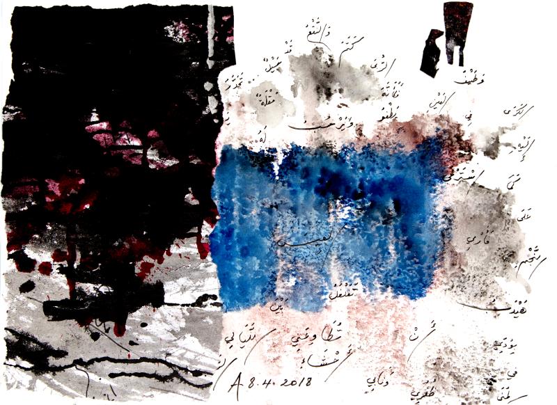 他的這種藝術(shù)實(shí)踐也可追溯至維克多·雨果(Victor Hugo)的繪畫,或進(jìn)一步,追溯至對(duì)其產(chǎn)生重大影響的超現(xiàn)實(shí)主義者那 —— 眾所周知,他們通過詩歌打開人類的感性,就像蘇菲主義,讓人沉浸在充滿詩意、超越一切的忘我境界。一切既相關(guān),又都未完成。阿多尼斯的每件拼貼-繪畫-手稿,都是詩人向我們發(fā)出的一個(gè)小小宣言,呼吁一種更開放、更含蓄、更微妙、更深刻、更感官、更有思想、更個(gè)性化、更政治化、更即時(shí)、更能持久的詩歌藝術(shù)。