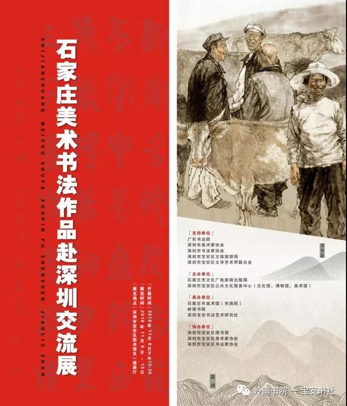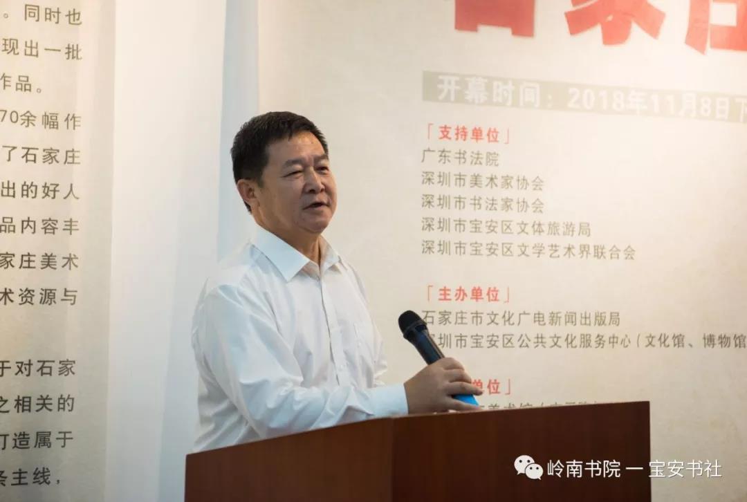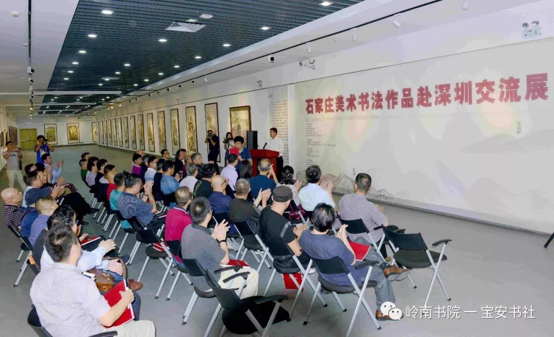 2018年11月8日下午15:00,由石家莊市文化廣電新聞出版局、深圳市寶安區(qū)公共文化服務中心(文化館、博物館、美術(shù)館)主辦,石家莊市美術(shù)館(市畫院)、嶺南書院、深圳寶安書法藝術(shù)研究社承辦,深圳市寶安區(qū)圖書館、寶安區(qū)美協(xié)、寶安區(qū)書協(xié)協(xié)辦并得到深圳市書法家協(xié)會、美術(shù)家協(xié)會、寶安區(qū)文體旅游局、寶安區(qū)文聯(lián)的大力支的 “ 石家莊美術(shù)書法作品赴深圳交流展 ” 在深圳市寶安區(qū)圖書館負一樓展廳隆重開幕——