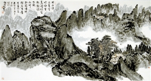 王和平不僅能書寫2尺的大字,還能寫篆書、隸書、行書、草書、楷書,他尤其擅長以指書寫長線條幅,還能書寫小到1寸左右的楷書、行書、草書等各種書體?!皬乃摹饵S山系列》,我看到了一個堅強的古典腳步,追尋在范寬的《谿山行旅途》中,沐李唐的《萬壑松風圖》,聽馬遠的《踏歌圖》……一個精美絕倫的藝術時代遠逝而去,念天地之悠悠,獨愴然而涕下。留幽幽懷古者,追憶圣賢高士清歌古琴于卷軸中的絕美風騷。王和平和我都是這個幽幽懷古者,追求高貴古典精神的尋賢之人。”這是評論家豐川在他的《心有千像,十指墨弦》一文中評價王和平的指書所述。