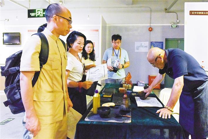 力嘉創(chuàng)意文化產(chǎn)業(yè)園分會(huì)場(chǎng)現(xiàn)場(chǎng)為來賓拓印文化創(chuàng)意圖案。