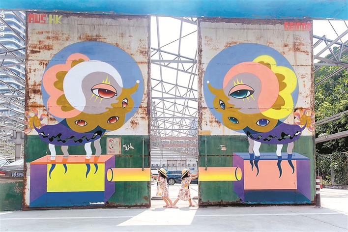 在城市公共空間中,涂鴉藝術不僅是一種重要的人文景觀,同時還能給人一種視覺享受,使單一的生活變得富有色彩。來自中國香港的全職藝術家彭怡擅長用涂鴉進行故事創(chuàng)作,作品《雙觀》以左右對稱相望的停車場守護神的形象感染車主與行人,傳達平穩(wěn)冷靜的力量。同樣來自中國香港的涂鴉藝術家曾昭昶,利用文字涂鴉作品的視覺誤差,嘗試突破停車格的物理范圍,將平面轉(zhuǎn)為立體,帶來作品《內(nèi)&外》。