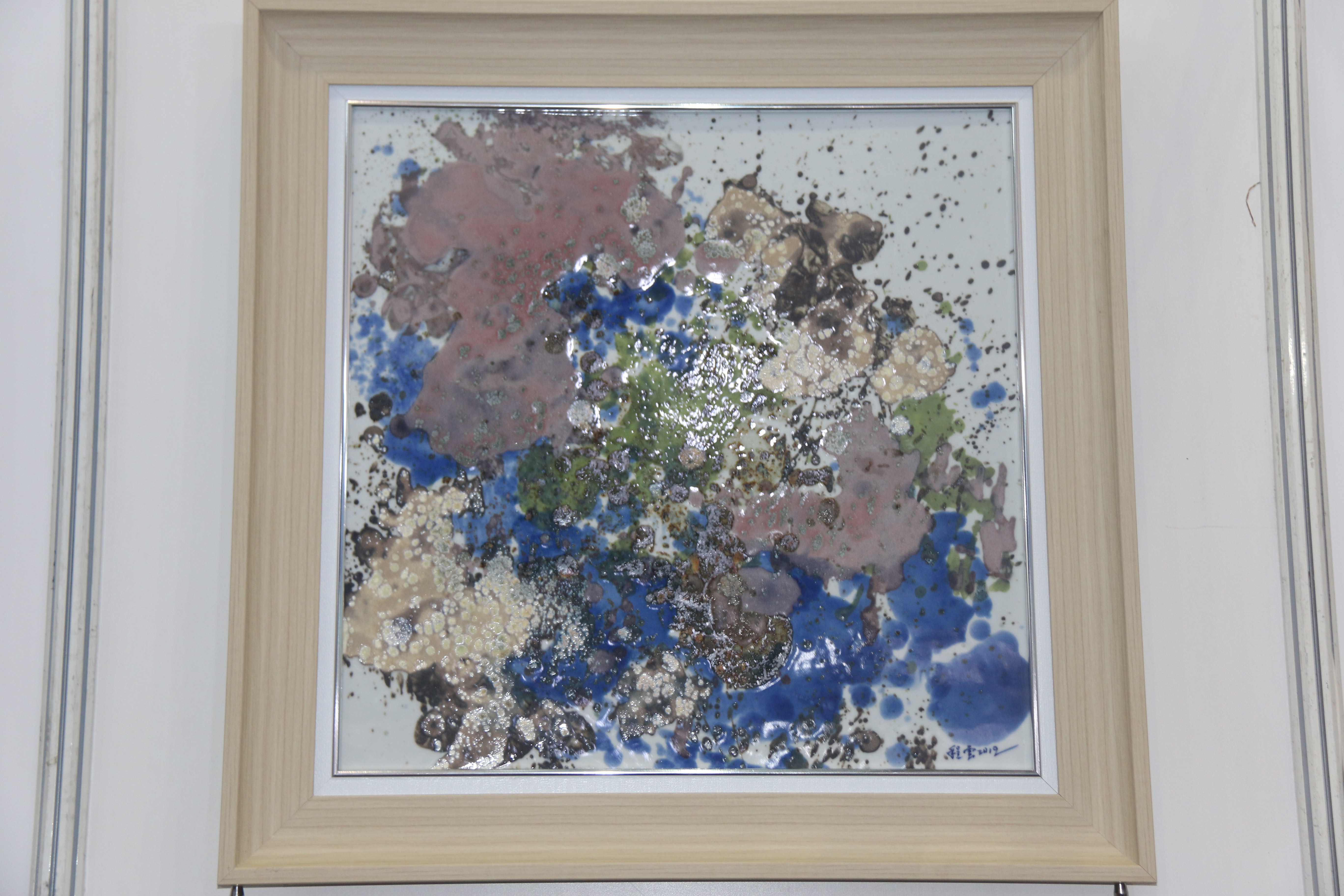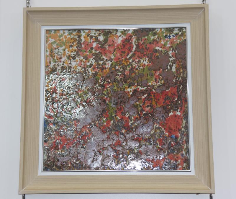 高溫顏色釉板畫則是則是使用各種色彩相融合后,便產生粉化作用,紅彩變成粉紅,綠彩變成淡綠,黃彩變成淺黃,其他顏色也都變成不透明的淺色調,并可控制其加入量的多寡來獲得一系列不同深淺濃淡的色調,給人粉潤柔和之感。