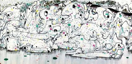描繪蘇州四大園林之一獅子林風(fēng)景的獅子林題材是吳冠中生平最重要的藝術(shù)創(chuàng)作之一,被認為是代表吳冠中藝術(shù)生涯承前啟后的重要杰作,囊括了他對西方與東方、傳統(tǒng)與現(xiàn)代、物質(zhì)與精神所有的理解和闡釋。從《獅子林》開始,吳冠中以點、線、面表現(xiàn)山川風(fēng)景的個人畫風(fēng)得以形成。此幅《獅子林》是吳冠中1988年創(chuàng)作的。2011年這幅作品就曾于保利春拍拍出1.15億元,引起不小的轟動。另一幅更為經(jīng)典的《獅子林》收藏在中華藝術(shù)宮,是吳冠中1983年的作品。