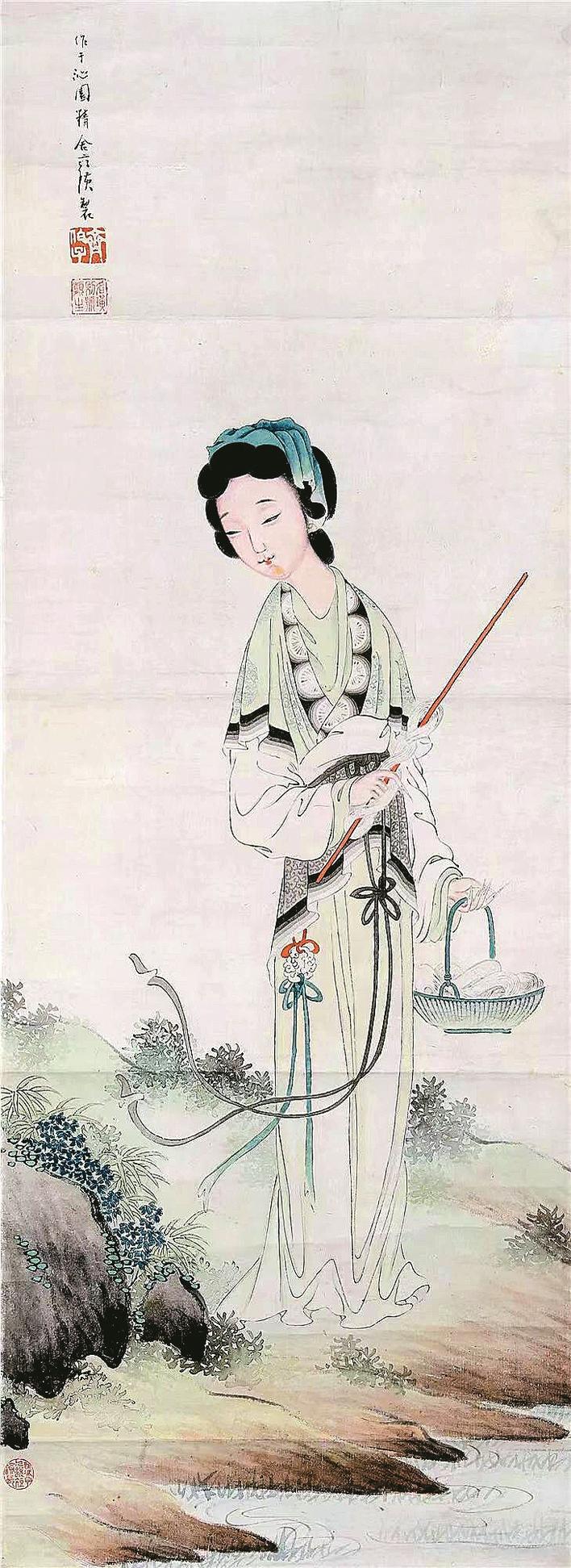 齊白石《西施浣紗圖》紙本設(shè)色首都博物館藏
