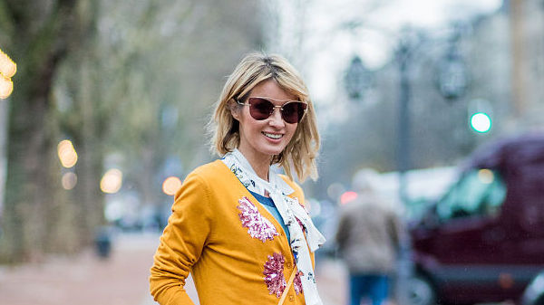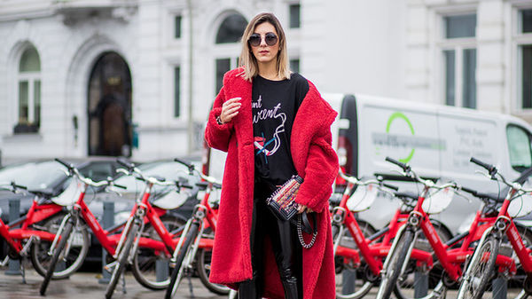 唐嫣紅唇魅惑甜笑露酒窩 格子大衣保暖有型