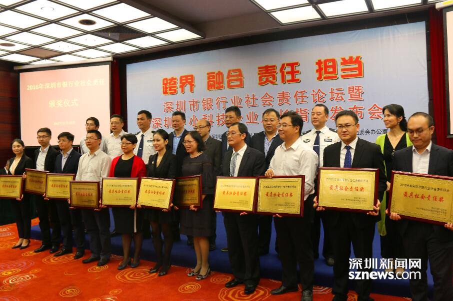 11月6日下午, 深圳市銀行業(yè)社會(huì)責(zé)任論壇在深圳市會(huì)展中心舉行,論壇上宣布了深圳市銀行業(yè)社會(huì)責(zé)任優(yōu)秀單位。在深圳市銀行業(yè)協(xié)會(huì)主辦的2016年度深圳市銀行業(yè)社會(huì)責(zé)任評(píng)比活動(dòng)中,華夏銀行深圳分行榮獲“最具社會(huì)責(zé)任獎(jiǎng)”。