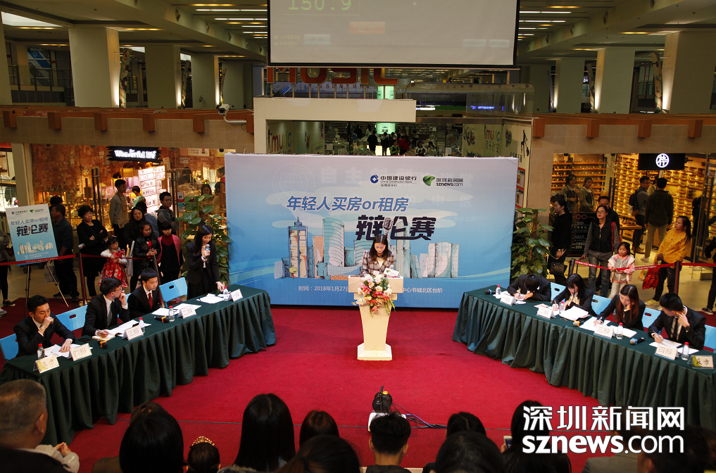 深圳新聞網(wǎng)訊 房是老百姓安身立命之所,是溫暖的港灣。買房、租房正是大家茶余飯后最關(guān)心的話題。隨著“租售同權(quán)”概念的提出,在住房制度改革、大力推進(jìn)住房長效機(jī)制建設(shè)的背景下年輕人到底是該窮其一生做“房奴”買房呢?還是追求生活品質(zhì)走進(jìn)租房新時代呢?為了聽到關(guān)于這個話題的更多聲音,了解更多人的看法,1月27日下午,由深圳新聞網(wǎng)聯(lián)合中國建設(shè)銀行深圳市分行主辦的《年輕人買房VS租房》辯論賽在中心書城北臺階激情開賽。