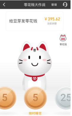作為存錢罐,“小招喵”萌萌的外形招人喜歡,而當(dāng)把智能小屏幕放入表帶,它又變身真正的兒童手表時刻陪伴孩子。家長登錄招商銀行APP“零花錢大作戰(zhàn)”功能,綁定小孩的銀行卡和儲蓄罐后,動動手指就能給孩子“發(fā)送”零花錢,與孩子實時互動,整個零花錢發(fā)送體驗非常有趣。家長還可以和孩子做“約定”,當(dāng)孩子完成某項約定任務(wù),進行轉(zhuǎn)賬。而小朋友可以在自己的“小招喵”存錢罐上,可以看到零花錢金幣落下過程,還可以通過存錢罐去查詢零花錢余額。