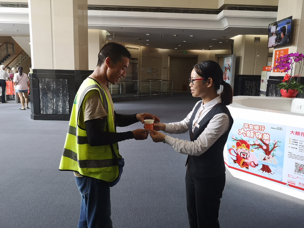 炎炎夏日,清潔工、建筑工人、快遞員等戶外工作者,頭頂著烈日、在滾滾熱浪中辛苦工作,守護(hù)著城市的安寧與美麗。為了關(guān)愛(ài)這些戶外工作者,傳遞社會(huì)正能量,踐行社會(huì)責(zé)任,平安銀行在全國(guó)網(wǎng)點(diǎn)發(fā)起了“夏日送清涼?平安更懂你”公益行動(dòng)。該行深圳分行也在深圳地區(qū)100多家網(wǎng)點(diǎn)全面開展了此項(xiàng)公益活動(dòng),在炎熱的夏日為戶外工作者送去一份關(guān)愛(ài)。