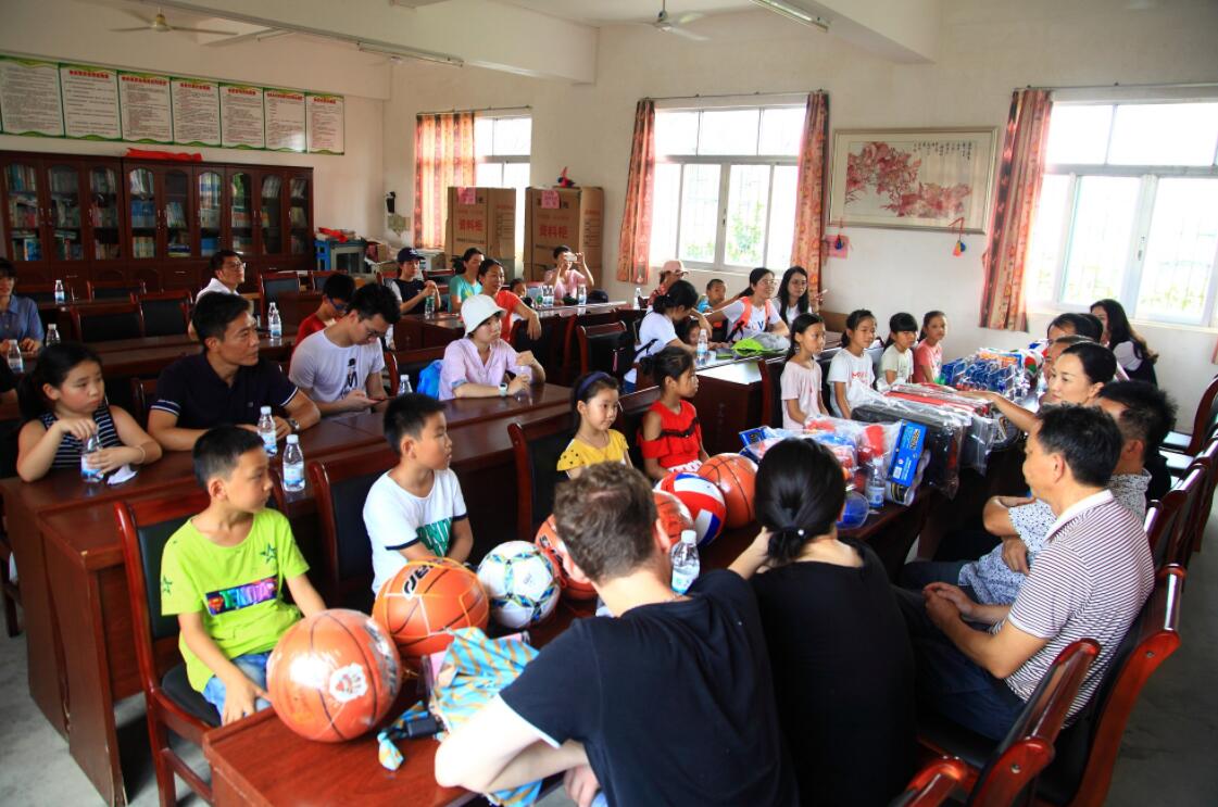 隨后,在村主任的帶領(lǐng)下,大家來到了洋頭小學,參觀了小學的教室、操場等教學設(shè)施,與校領(lǐng)導及部分學生進行了交流,并向?qū)W校捐贈了籃球、足球、排球、跳繩、羽毛球、乒乓球拍、拳靶、拳套等體育教學用品。這些體育用品受到師生們的熱烈歡迎,一些好奇的同學還當場穿戴上嶄新的拳擊手套為大家“表演”了一番。學?;顒咏Y(jié)束后,大家又參觀了該行扶貧生產(chǎn)種植基地——柚子園,園內(nèi)柚子碩果累累、長勢喜人,大家紛紛拍照留念。