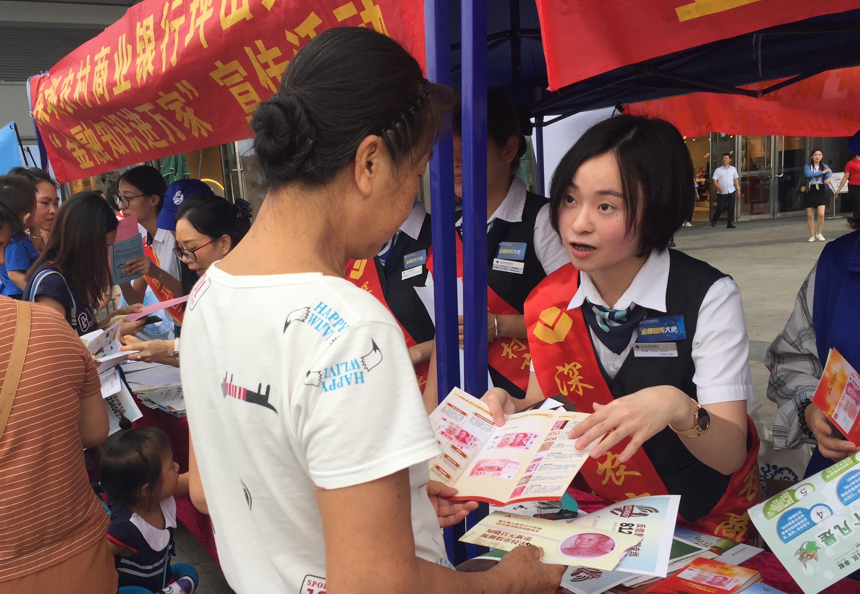 為進(jìn)一步推動金融知識的廣泛傳播,9月28日,深圳農(nóng)村商業(yè)銀行攜同光大銀行、郵政儲蓄銀行、坪山珠江村鎮(zhèn)銀行在坪山區(qū)大型商場“益田假日世界廣場”舉行“金融知識宣傳活動”?;顒蝇F(xiàn)場來咨詢的市民絡(luò)繹不絕,很多聽完講解的市民都對這種貼心的宣傳服務(wù)譽(yù)不絕口。