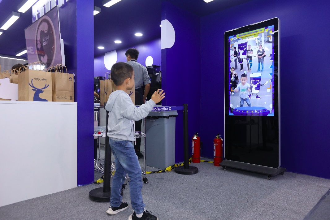 瑞幸咖啡快閃店位于琶洲會館A區(qū)3.2館2C05,在提供咖啡與飲品服務的同時,現(xiàn)場還準備有豐富的互動娛樂活動,觀眾可以在互動尬舞機前比試一番,掃碼后自動生成短視頻,領取后可自行上傳到網(wǎng)上,然后領取瑞幸咖啡為本次廣州車展準備的5.8折飲品優(yōu)惠券。