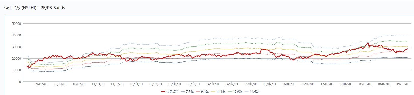 以上內(nèi)容僅僅是本輪反彈的拆解,如果將視野放到年內(nèi),經(jīng)過(guò)了2018年的殺估值(從14.62倍到9.4倍,35%),哪怕最悲觀的情況下,估值從目前的10.55到極端低估的7.74,估值的下殺空間不過(guò)26.6%,中性情況下,考慮到企業(yè)盈利盈利的增長(zhǎng),恒指下行的空間在目前環(huán)境下也很難超過(guò)10%,沒(méi)有重大事件的影響,恒指全年預(yù)計(jì)會(huì)在這個(gè)區(qū)間內(nèi)波動(dòng),但個(gè)股會(huì)出現(xiàn)比較明顯的分化,賺錢(qián)效應(yīng)要遠(yuǎn)遠(yuǎn)強(qiáng)于2018年,若是恒指出現(xiàn)恐慌性的調(diào)整,優(yōu)質(zhì)個(gè)股反而是趁亂買(mǎi)入的好機(jī)會(huì)。(智通特供)