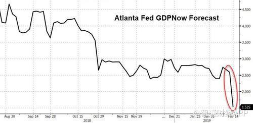 但最嚴(yán)重的下調(diào)來自亞特蘭大聯(lián)邦儲備銀行,在今天的零售數(shù)據(jù)公布后,該行將GDP預(yù)測下調(diào)至1.5%,較2月6日的2.7%下降了近50%。