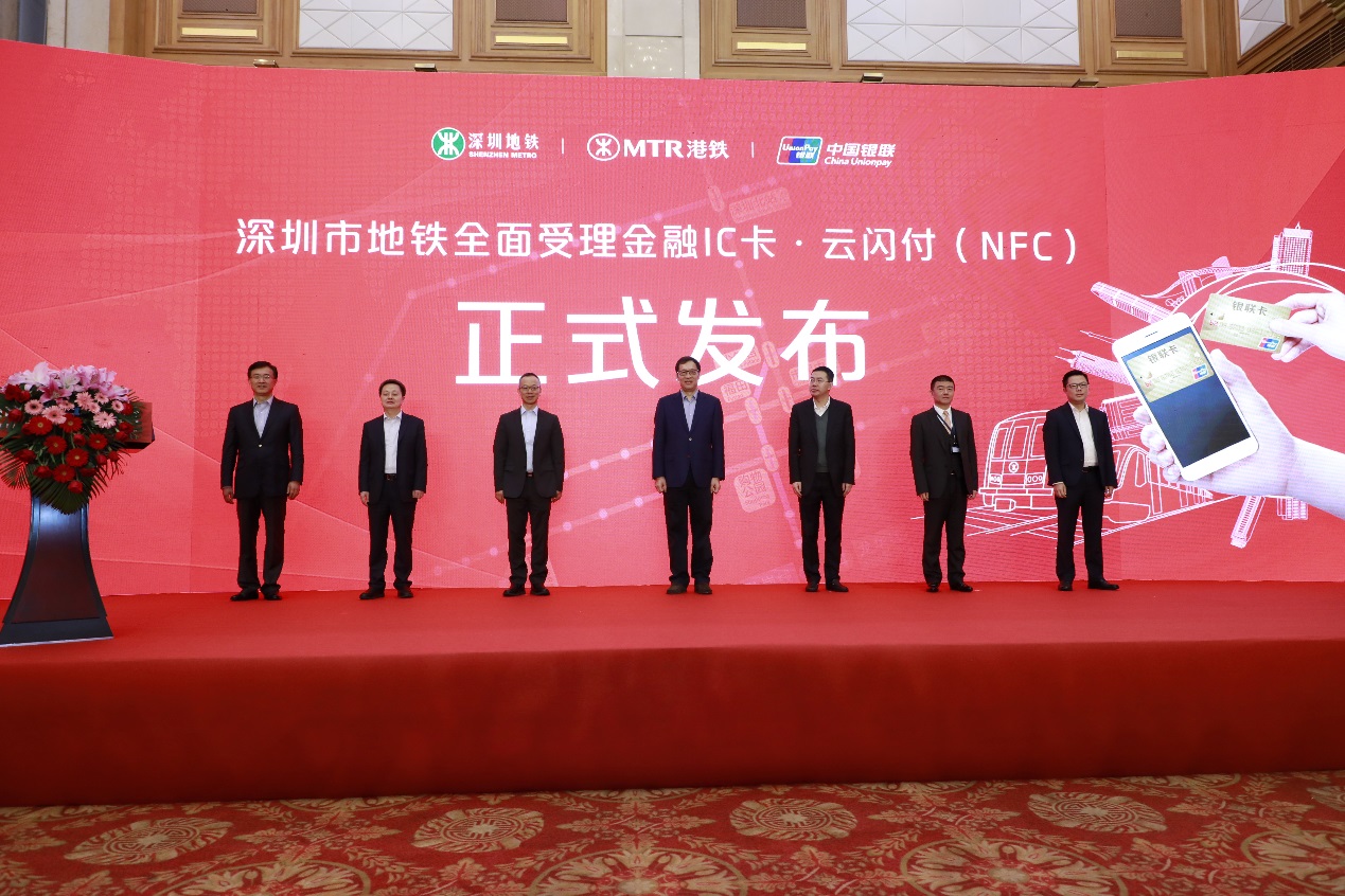 3月1日上午,五洲賓館內(nèi)舉行了“深圳市地鐵金融IC卡過閘服務(wù)”的啟動(dòng)儀式。中國人民銀行副行長范一飛、深圳市人民政府副市長艾學(xué)峰、招商銀行總行副行長劉建軍、中國銀聯(lián)董事長邵伏軍、招商銀行深圳分行行長岳鷹、深圳地鐵董事長辛杰、港鐵(深圳)總經(jīng)理黃琨暐等相關(guān)領(lǐng)導(dǎo)出席了啟動(dòng)儀式,并共同點(diǎn)亮LED燈幕,宣告深圳市地鐵8條線路的所有車站正式啟用過閘功能。