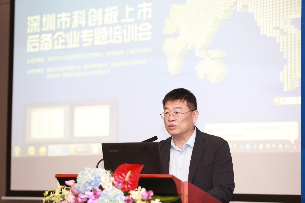 本次培訓會由賈長勝局長致開幕詞,賈局長提到, 深圳市中小企業(yè)局一直致力于扶持本地 中小 企業(yè)做大做強, 本次培訓會旨在幫助 后備 企業(yè)深入了解科創(chuàng) 板制度安排和 政策導向、企業(yè)上市策略及上市流程等方面的內(nèi)容, 助力深圳本地企業(yè)把握歷史機遇 登陸科創(chuàng)板 ,借力資本市場開創(chuàng)新里程續(xù)寫新篇章 。