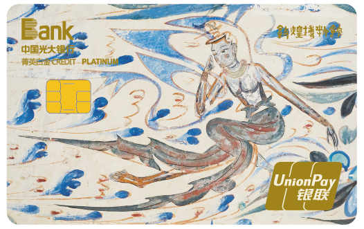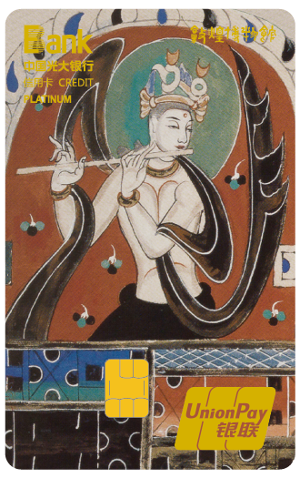 光大敦煌聯(lián)名信用卡卡面設(shè)計(jì)取材于敦煌壁畫,有敦煌大智文殊白金卡、敦煌天宮伎樂白金卡以及敦煌五百?gòu)?qiáng)盜成佛菁英白金卡三種信用卡。光大敦煌聯(lián)名信用卡的卡面設(shè)計(jì)靈感均來源于敦煌壁畫,大智文殊白金卡畫面為文殊菩薩結(jié)跏坐于青面獅虬首仙獅背上。文殊菩薩是專司智德、辯才第一的大菩薩,尊號(hào)“大智文殊”。天宮伎樂白金卡主體畫面為伎樂天,取材于莫高窟288窟,營(yíng)造了佛陀講經(jīng)說法時(shí)佛國(guó)世界歡樂祥和的氛圍。五百?gòu)?qiáng)盜成佛菁英白金卡卡面設(shè)計(jì)取自“五百?gòu)?qiáng)盜成佛”的壁畫故事,佛用神通使被剜去雙眼的強(qiáng)盜重見光明,并對(duì)他們進(jìn)行點(diǎn)化,五百?gòu)?qiáng)盜潛心苦修終成五百羅漢。光大敦煌聯(lián)名信用卡的卡面設(shè)計(jì)將傳統(tǒng)文化融入現(xiàn)代金融產(chǎn)品,極具敦煌文化的風(fēng)格。