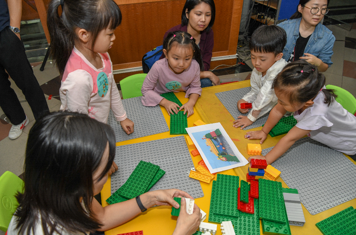 認真聽完講解后,“小小建筑師”們便各自拿著設計藍圖,發(fā)揮想象,開始了今天的DIY之旅?!暗鬃詈昧?,上面的顏色是紅黃交替的……”活動現場,一位小朋友進度很快,已經搭建過半,他一邊看著圖紙,一邊構思著下一步。在被問及為什么底座缺失了幾塊積木時,這位“小小建筑師”得意的告訴記者:“我這個塔樓可是建在礁石上的,你見過哪一塊礁石是整整齊齊的呀?”