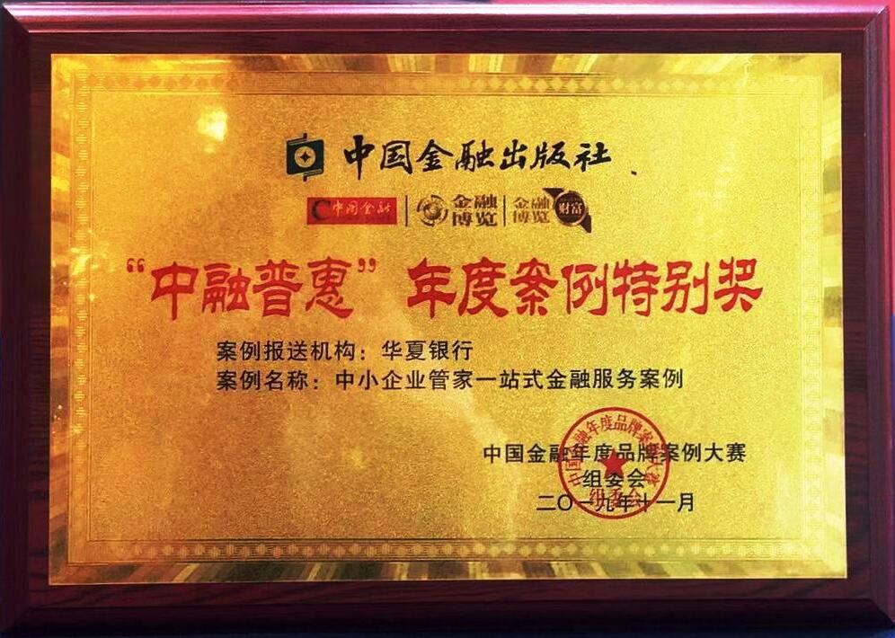 深圳新聞網12月11日訊 2019年11月,在“第二屆(2019)中國金融年度品牌案例大賽”上,華夏銀行獲得“中融普惠”年度案例特別獎。