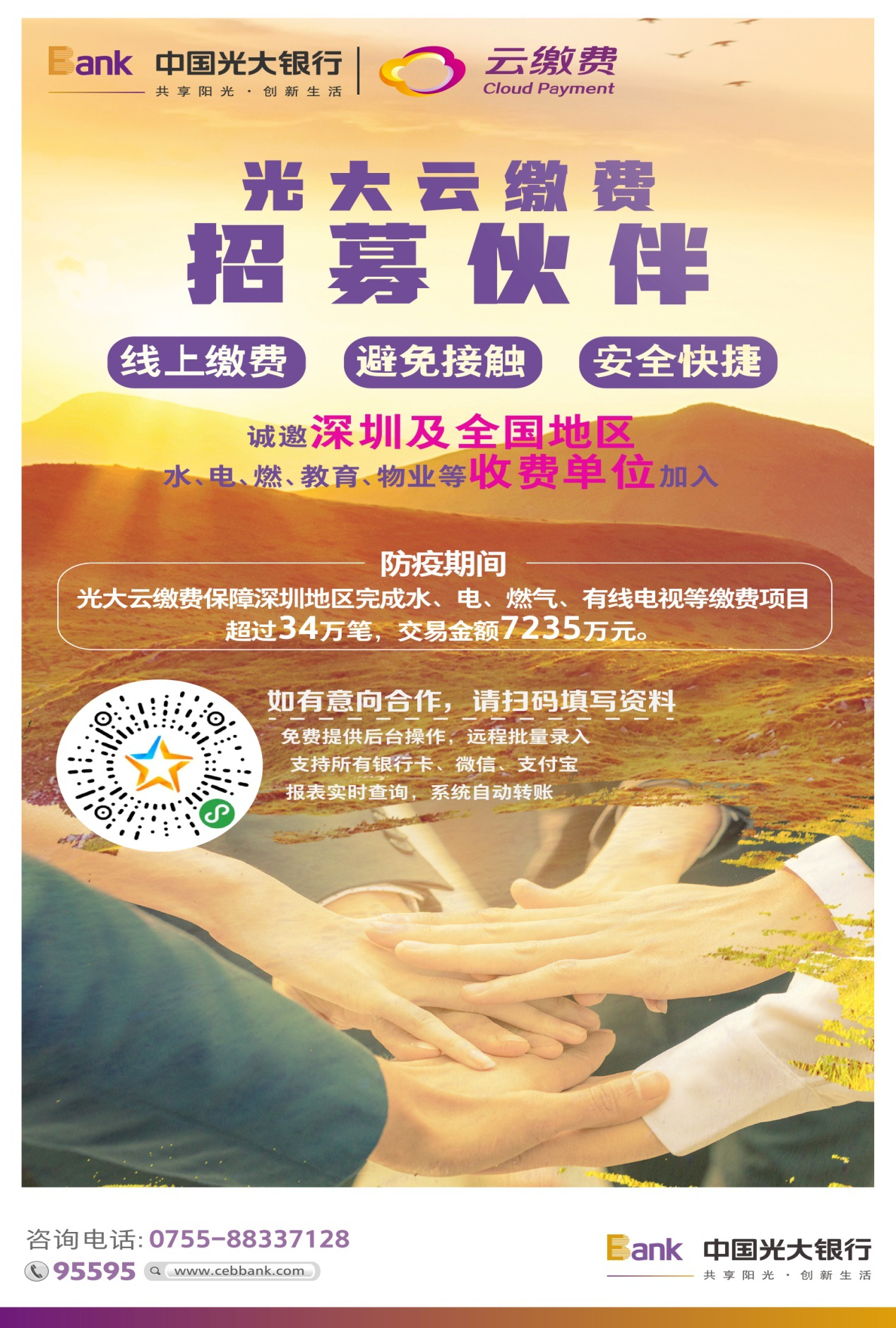 見圳客戶端·深圳新聞網(wǎng)2月26日訊 守望相助,共克時艱。面對新型冠狀病毒疫情防控的緊張形勢,為有效阻斷病毒傳播渠道,光大銀行深圳分行積極響應(yīng)國家號召,充分發(fā)揮云繳費線上便民繳費服務(wù)優(yōu)勢,全力保障全國,特別是重點地區(qū)水、電、燃等主要生活繳費線上通道穩(wěn)定暢通運行,足不出戶,完成各類繳費,最大限度降低了居民的出行風(fēng)險,全面助力打贏“防疫”阻擊戰(zhàn)。