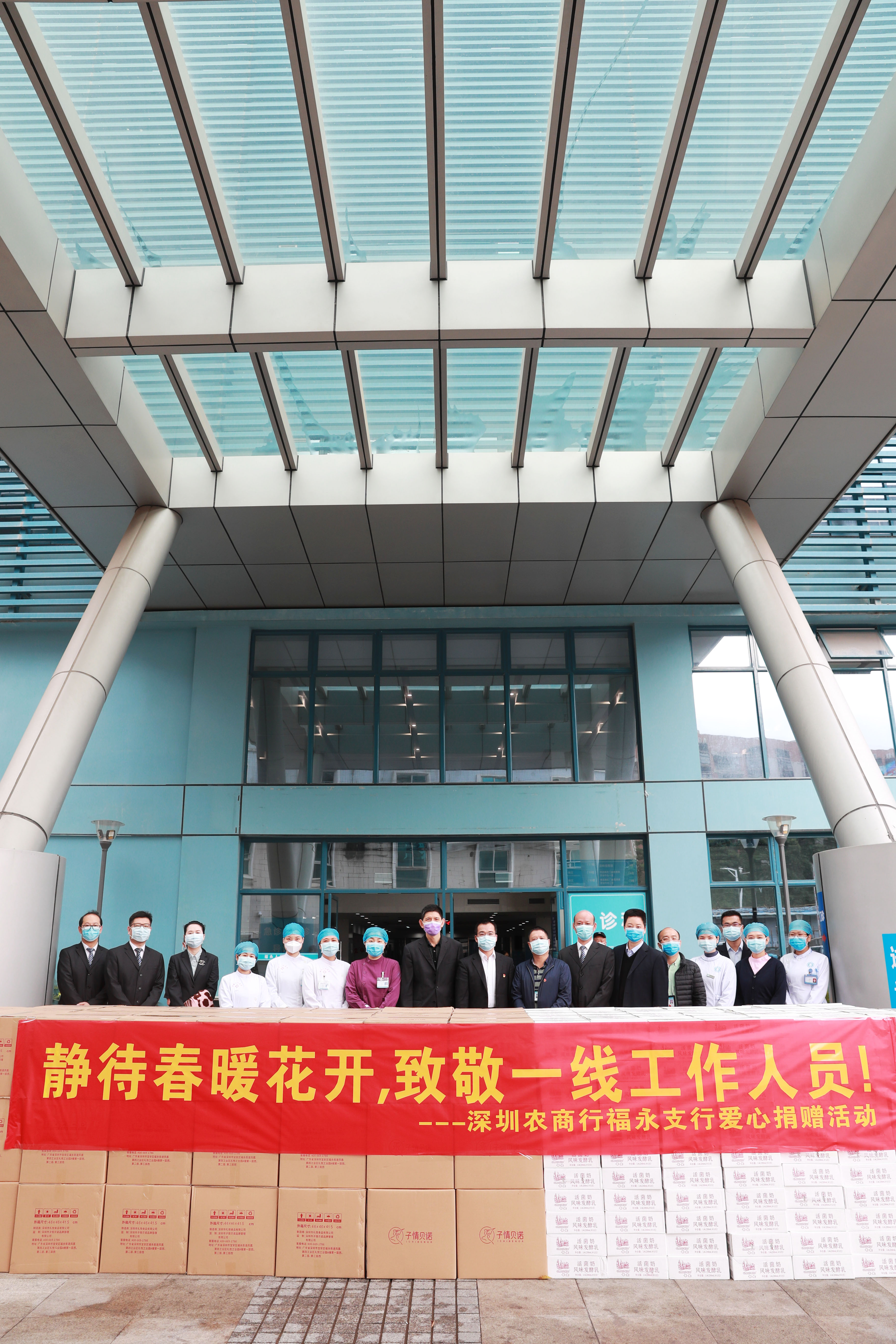 福永人民醫(yī)院堅(jiān)守在福永街道抗疫前線,守護(hù)著福永和福海近百萬(wàn)人的健康,為感謝福永人民醫(yī)院醫(yī)務(wù)人員加班加點(diǎn)忘我奮戰(zhàn),深圳農(nóng)商行福永支行選購(gòu)了1500盒糕點(diǎn)和1500箱酸奶送到福永人民醫(yī)院,表達(dá)他們對(duì)醫(yī)務(wù)工作者“舍小家、為大家”的崇高敬意。
