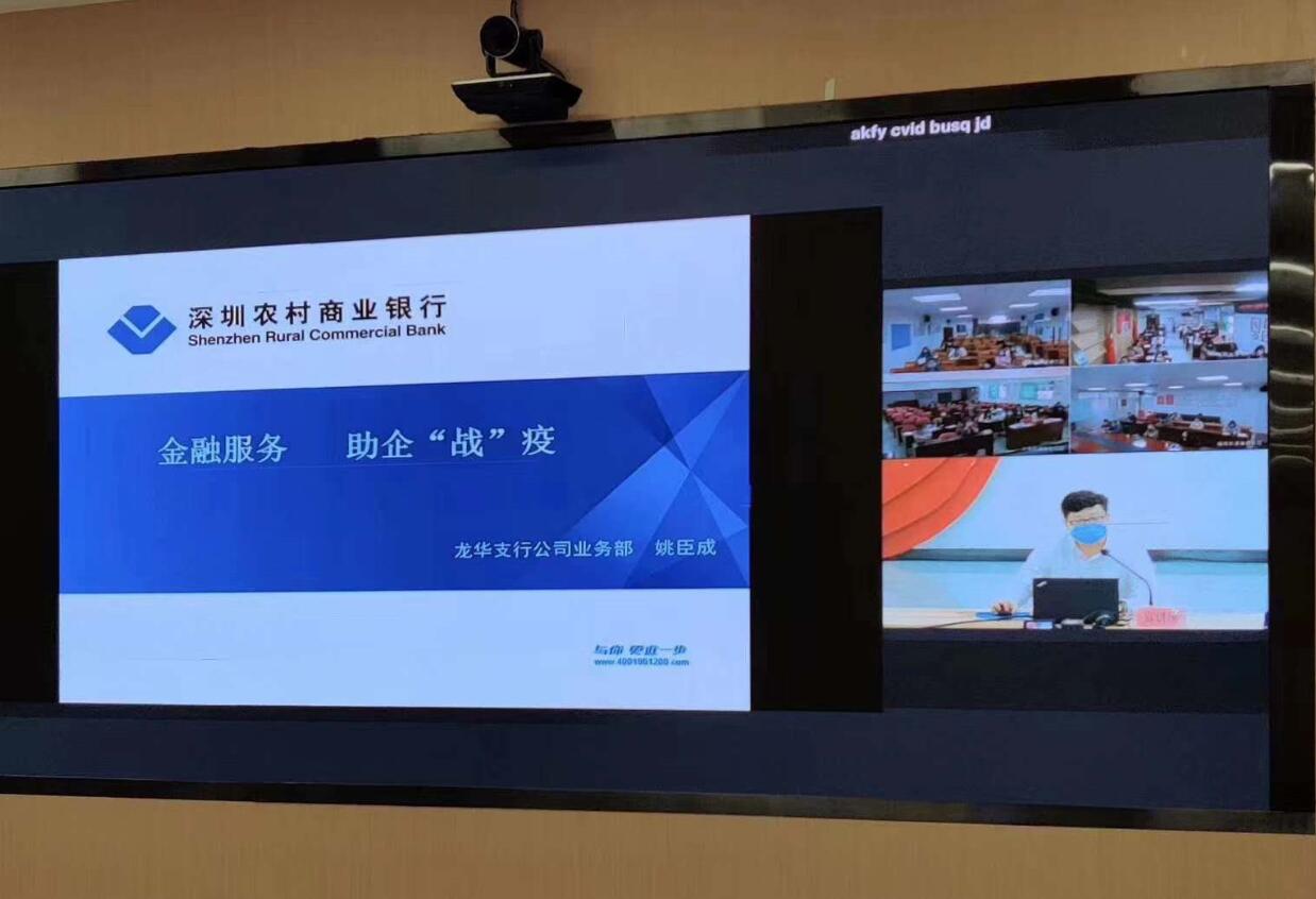 深圳農(nóng)商行龍華支行作為與會金融機構代表,通過視頻直播及ppt演示的方式為區(qū)內(nèi)各企業(yè)詳細介紹了該行推出的抗疫專項產(chǎn)品和近期的授信優(yōu)惠政策。會后,深圳農(nóng)商行龍華支行派駐多名客戶經(jīng)理現(xiàn)場為中小微企業(yè)受理信貸需求,為企業(yè)量身定制金融方案,用實際行動為轄區(qū)內(nèi)中小微企業(yè)提供“接地氣”的綜合金融服務,助力企業(yè)復工復產(chǎn)。