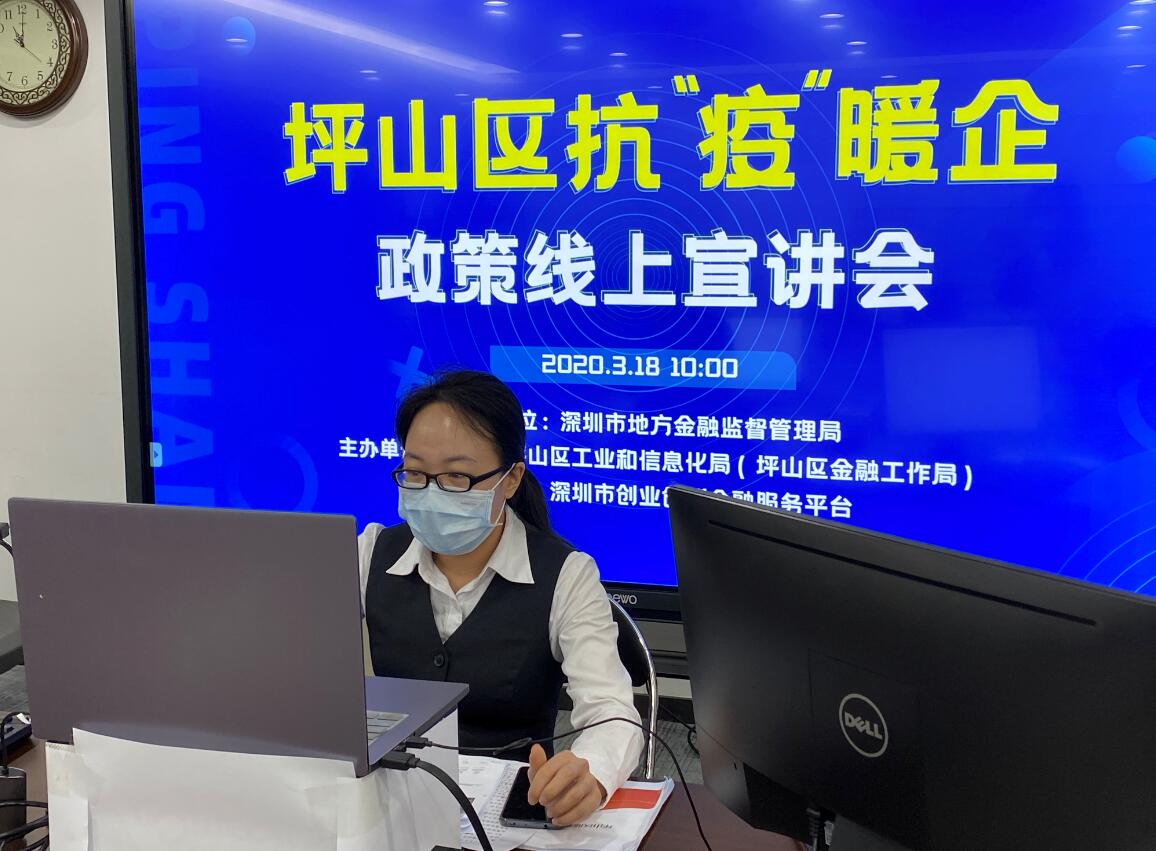 為充分支持坪山區(qū)內(nèi)企業(yè)抗擊疫情和復工復產(chǎn),攜手企業(yè)共渡難關,2020年3月18日上午,深圳農(nóng)商行坪山支行通過“線上宣講”方式參加了由坪山區(qū)工業(yè)和信息化局聯(lián)合開展的抗“疫”暖企政策宣講和銀企對接系列活動?;顒又?,深圳農(nóng)商行坪山支行為區(qū)內(nèi)100多家企業(yè)詳細介紹該行在抗疫期間推出的“抗疫周轉貸”、“抗疫訂單貸”、“抗疫醫(yī)療貸”等專屬產(chǎn)品,同時也為企業(yè)推薦了“速抵貸”、“速易貸”、“稅e貸”、“通發(fā)貸”等特色產(chǎn)品。