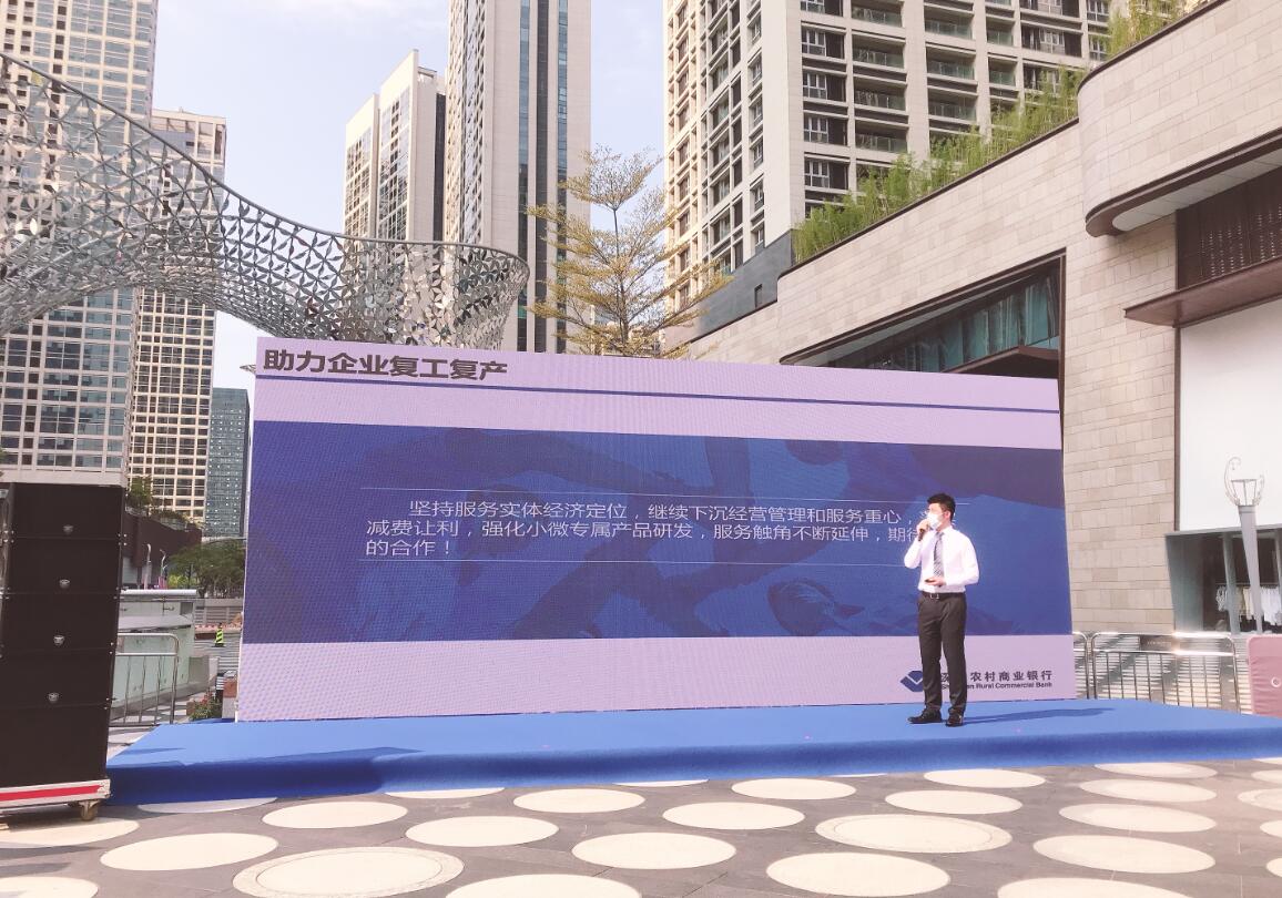 為支持復工復產(chǎn)有序開展,深圳農(nóng)商行公明支行積極響應政府號召,履行社會責任,及時主動聯(lián)絡所在區(qū)工信局、街道企服中心、經(jīng)財辦和各股份公司,就復工企業(yè)面臨的資金周轉難題舉辦多場專場產(chǎn)品講解會。3月10日和3月18日深圳農(nóng)商行公明支行分別參與了由公明街道下村社區(qū)和光明區(qū)工信局(金融工作局)主辦的銀企見面會和銀政企直播,與區(qū)域內(nèi)的困難租戶以及企業(yè)代表進行了“面對面”討論。在見面會和直播中,深圳農(nóng)商行公明支行闡述了深圳農(nóng)商行作為本土銀行服務中小微企業(yè)的戰(zhàn)略定位,并對支持科創(chuàng)企業(yè)發(fā)展的政策、抗疫系列產(chǎn)品、政府訂單貸、速抵貸等特色授信產(chǎn)品進行了重點講解,同時,就企業(yè)關心的利率和額度等問題一一解答。