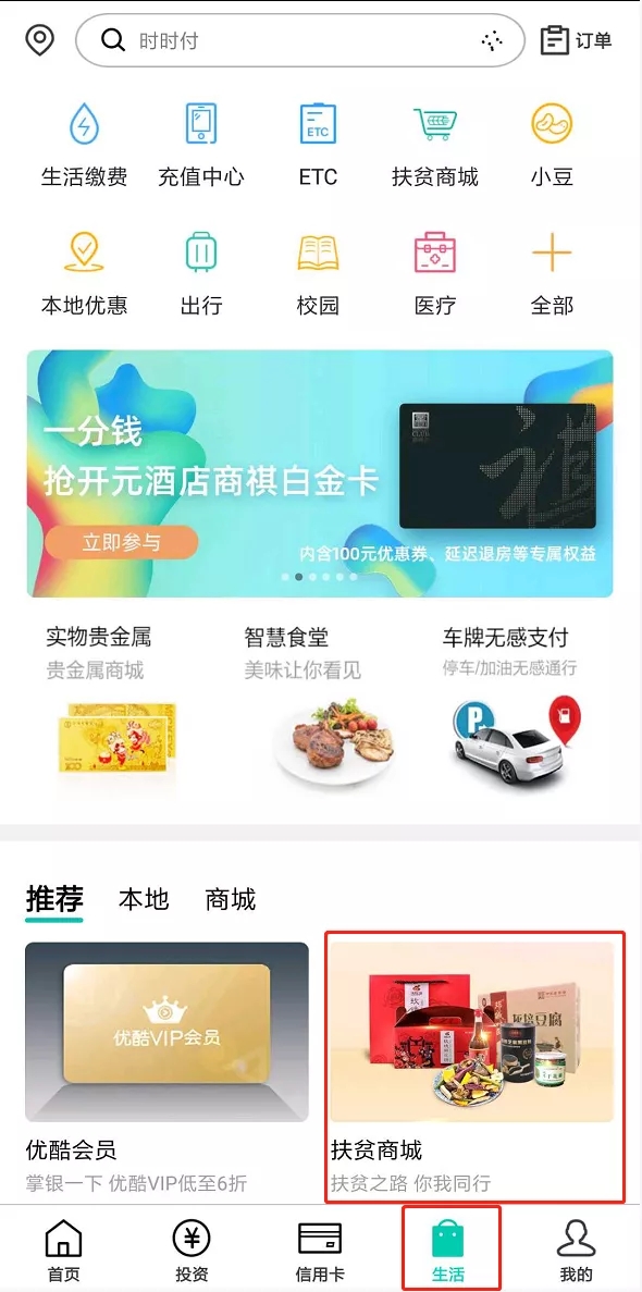 打開農(nóng)行掌銀APP,點擊“生活”-“扶貧商城”
