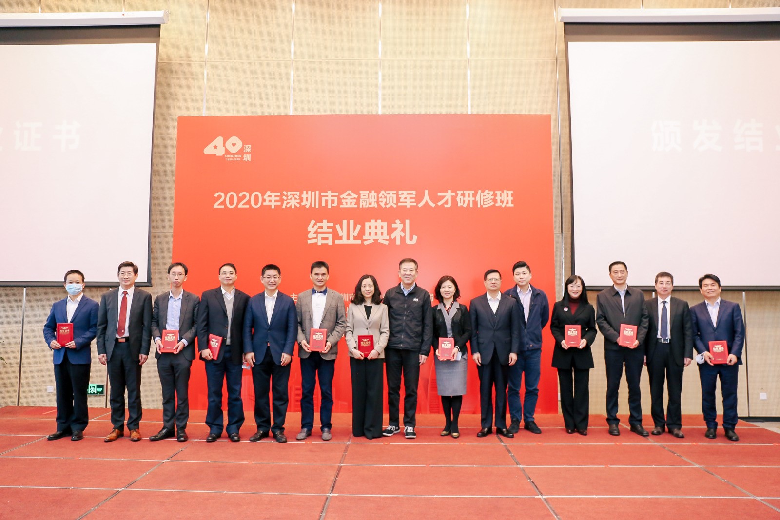 平生書記在致辭中表示,2020年是極不平凡的一年,是金融機構(gòu)積極主動作為、彰顯責(zé)任擔(dān)當(dāng)?shù)囊荒辏彩巧钲诮鹑跇I(yè)逆勢而上,保持平穩(wěn)健康發(fā)展的一年,金融機構(gòu)對全市統(tǒng)籌疫情防控和經(jīng)濟社會發(fā)展作出了重要貢獻,金融業(yè)在全市經(jīng)濟增長實現(xiàn)V形反轉(zhuǎn)、率先翻正中發(fā)揮了“壓艙石”作用,這些成績來自每一位金融人才的拼搏奮斗,領(lǐng)軍人才為行業(yè)發(fā)展做出了積極的貢獻。研修班期間,學(xué)員們一起聆聽名家大咖講課、踴躍參加主題論壇、認真撰寫調(diào)研報告,還開展了閉門研討、名企考察、交流互訪等形式多樣的活動,既豐富了知識、開闊了眼界,也促進了交流、收獲了友誼,總體達到了預(yù)期效果,為全面實施“深圳百千萬金融人才培養(yǎng)工程”奠定了扎實基礎(chǔ)。他希望學(xué)員學(xué)思悟踐、學(xué)以致用,緊抓粵港澳大灣區(qū)、先行示范區(qū)“雙區(qū)驅(qū)動”和綜合改革試點的重大歷史機遇,聚焦制約行業(yè)發(fā)展重點難點問題,深入研究、謀篇破題,為深圳金融業(yè)高質(zhì)量發(fā)展做出更大貢獻。