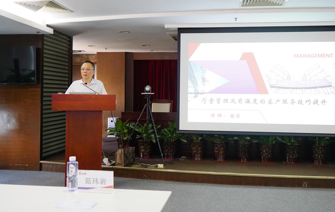 茹瑋巖表示,大堂經(jīng)理作為廳堂管理第一人,是非常重要的服務(wù)窗口,對(duì)廳堂服務(wù)的核心競(jìng)爭(zhēng)能力起著至關(guān)重要的作用。他對(duì)參與培訓(xùn)的學(xué)員們提出了四點(diǎn)要求,要爭(zhēng)分奪秒用心學(xué)、要理論聯(lián)系實(shí)際學(xué)、要有風(fēng)險(xiǎn)防范意識(shí)和奉獻(xiàn)擔(dān)當(dāng)意識(shí),“要?jiǎng)?chuàng)建學(xué)習(xí)型團(tuán)隊(duì),爭(zhēng)做學(xué)習(xí)型員工。要將理論結(jié)合實(shí)際,將營(yíng)銷技巧、服務(wù)方法和規(guī)章制度有機(jī)結(jié)合起來(lái),設(shè)身處地為客戶著想,為客戶提供有溫度的服務(wù),進(jìn)一步提高客戶滿意度?!?/p>