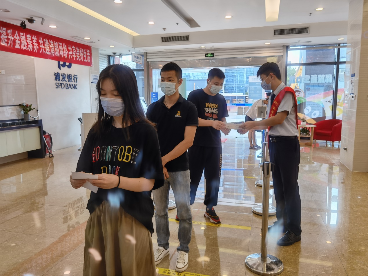 近期,全國疫情防控形勢依然嚴峻,浦發(fā)銀行深圳科苑按照上級要求,做好防疫相關(guān)工作,在每一位市民進入網(wǎng)點之前,均安排專人負責測量體溫,引導客戶出示行程碼和健康碼并要求戴好口罩。為提醒市民防疫,該網(wǎng)點還提供了免洗洗手液、一次性口罩等防疫物品。在紀念幣兌換排隊等候區(qū),該網(wǎng)點設(shè)立專屬通道,張貼一米等候線,引導市民有序完成兌換,避免人群扎堆。現(xiàn)場秩序井然,多位市民表示在節(jié)假日期間拿到紀念幣非常滿意。