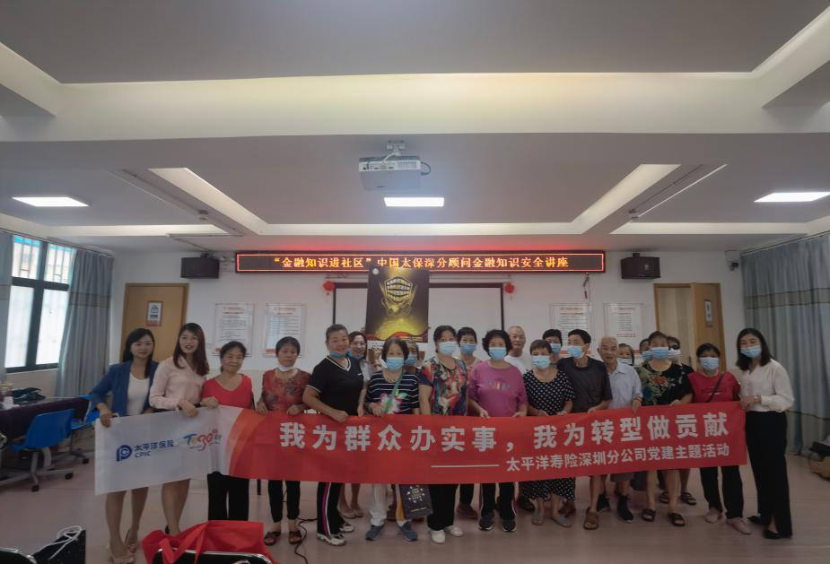 9月17日上午,中國太保壽險深圳分公司黨委組織部與業(yè)務(wù)條線的黨員、職工及營銷一線人員走進(jìn)華富街道田面社區(qū),面向社區(qū)的老年群體,開展了“金融知識進(jìn)社區(qū)”金融知識講座。本次活動以普及金融知識、宣講紅色金融史為主題,一是聚焦容易受到詐騙的老年群體,突出理性投資等宣傳教育重點,積極開展金融宣傳教育,加強(qiáng)知識普及和風(fēng)險提示,防范金融詐騙活動;二是堅持黨建引領(lǐng),緊密結(jié)合在黨和群眾中開展黨史學(xué)習(xí)教育工作的有關(guān)部署,大力宣傳紅色金融史,積極與群眾面對面、做基層宣講員,持續(xù)推動黨史學(xué)習(xí)教育走深走實。
