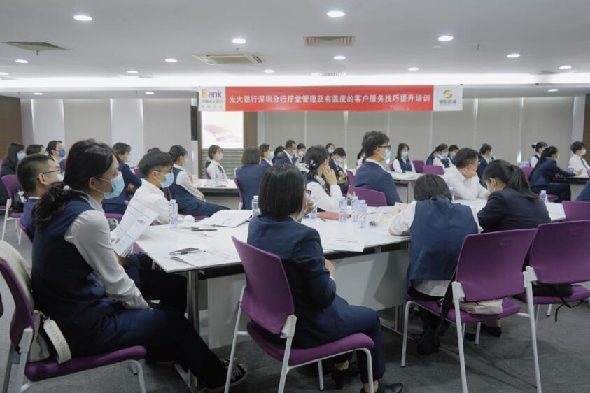 深圳新聞網(wǎng)2021年11月13日訊(記者 朱琳 通訊員 沈婷)為落實新形勢下的服務(wù)工作要求,推進更優(yōu)客戶體驗的服務(wù)規(guī)范,履行社會責任,樹立光大品牌。11月12日,光大銀行深圳分行舉辦了“廳堂管理及有溫度的客戶服務(wù)技巧提升”第三期專題培訓。深圳分行總監(jiān)、陽光服務(wù)(消費者權(quán)益保護)辦公室負責人以及各支行大堂經(jīng)理、大堂助理共50余人參加了培訓。