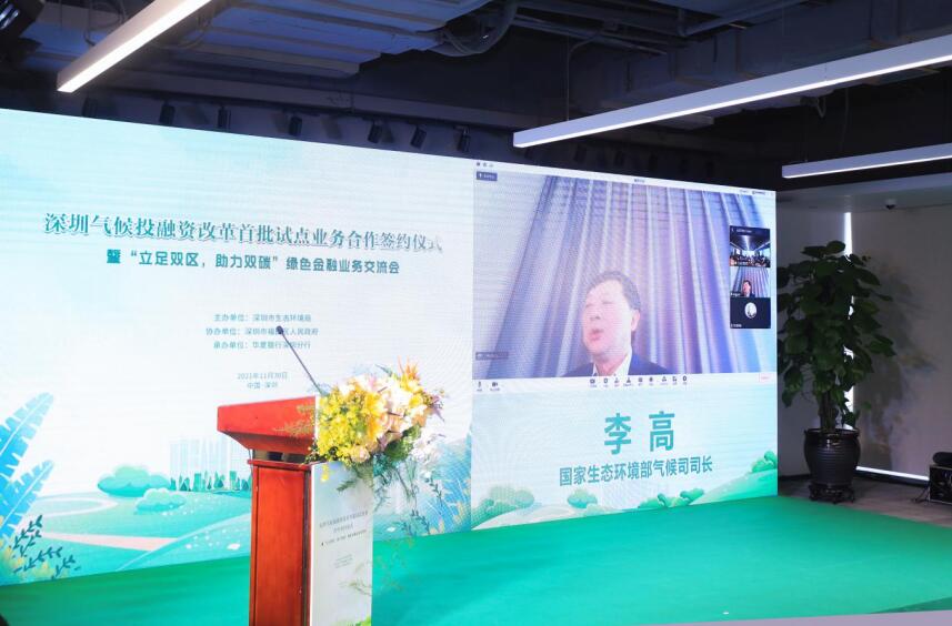 國家生態(tài)環(huán)境部氣候司李高司長通過視頻方式向會議發(fā)表致辭,向深圳氣候投融資改革首批試點業(yè)務合作簽約儀式的舉辦表示熱烈祝賀,向簽署協(xié)議的華夏銀行、創(chuàng)維光伏、拓日新能以及為推動協(xié)議簽署作出努力的深圳市區(qū)有關部門表示祝賀。