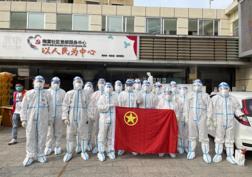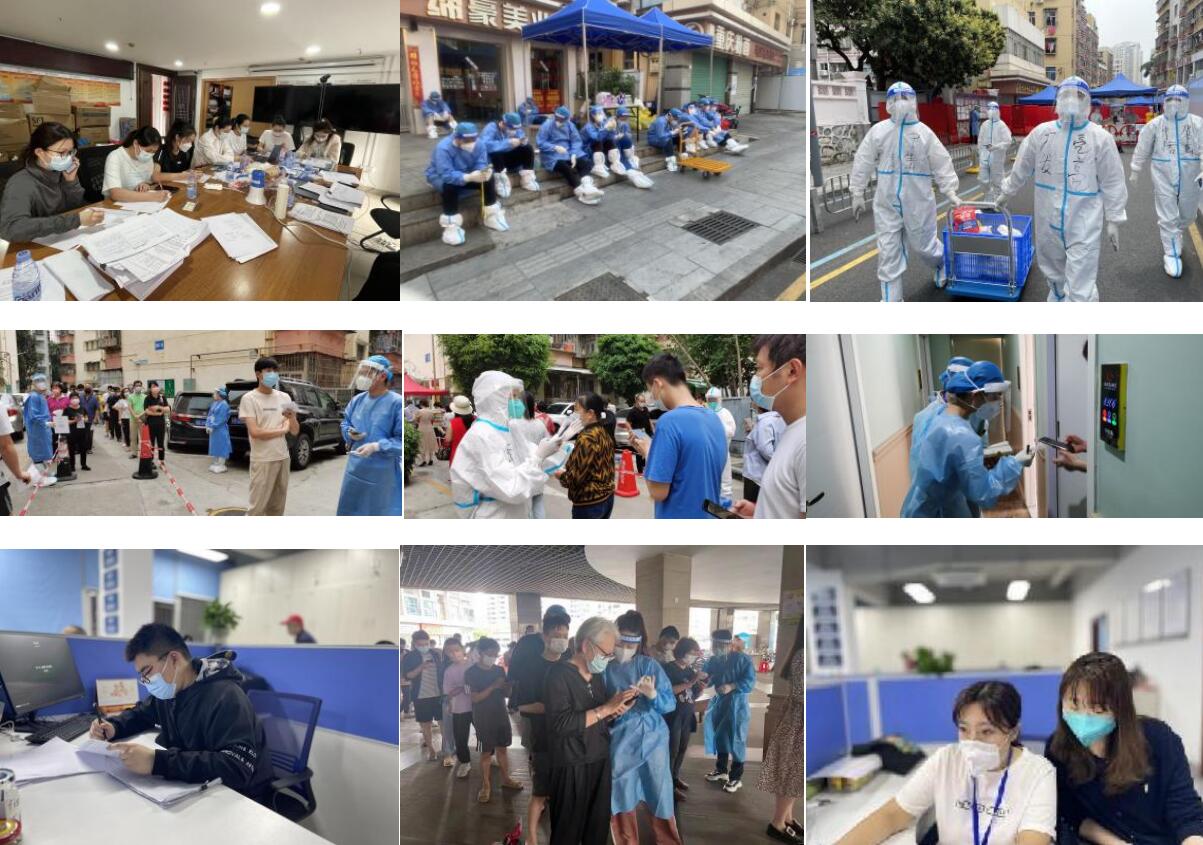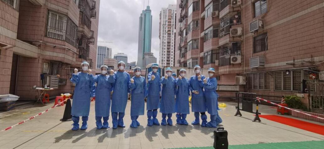 支援羅湖區(qū)金融署建立的金融抗疫志愿者隊伍一行24人,出色地完成了17日-20日的核酸檢測、核對人員、“掃樓”等抗疫志愿服務。