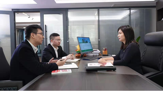 李江紅與團(tuán)隊(duì)伙伴溝通工作(中國人壽壽險(xiǎn)公司供圖)