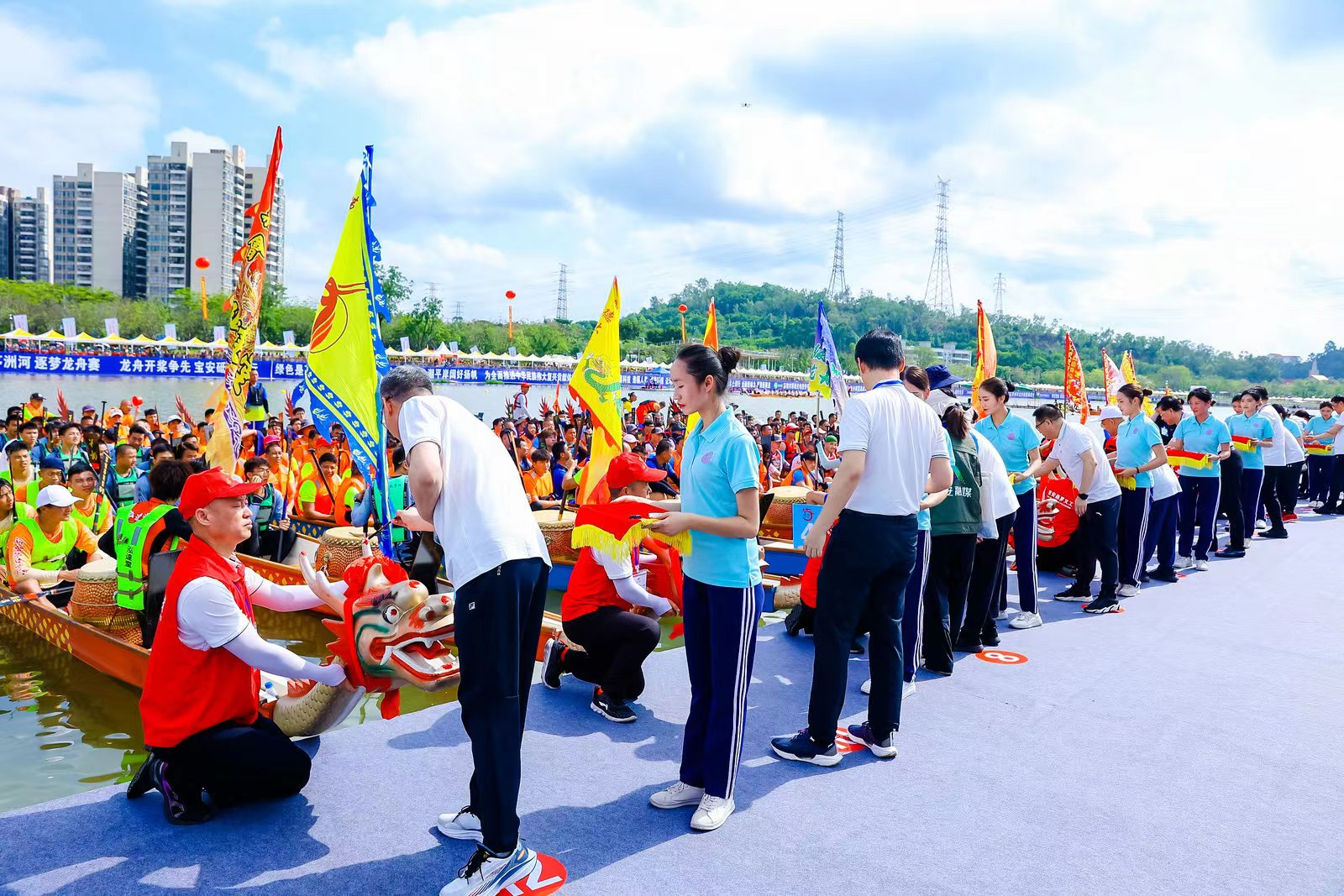 本次龍舟賽為省級(jí)賽事,層級(jí)更高、參賽范圍更廣、影響更深遠(yuǎn),吸引了來(lái)自粵港澳大灣區(qū)的香港、澳門(mén)、廣州、珠海等16支隊(duì)伍以及深圳本土8支隊(duì)伍參賽,規(guī)模創(chuàng)本賽事歷史新高。本次比賽是寶安區(qū)燕羅街道第三次舉辦茅洲河龍舟賽,也是深圳農(nóng)商銀行第三次作為贊助商,積極支持該賽事的舉辦。