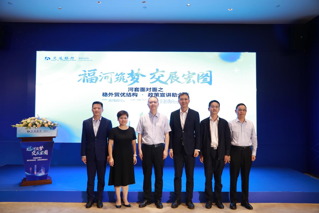 10月12日,在中國(guó)人民銀行深圳市分行、國(guó)家外匯管理局深圳市分局指導(dǎo)下,交通銀行深圳分行聯(lián)合福田區(qū)人民政府舉辦“福河筑夢(mèng),交展宏圖”穩(wěn)外貿(mào)優(yōu)結(jié)構(gòu)政策宣講助企行活動(dòng),并邀請(qǐng)了外貿(mào)企業(yè)、上市公司、科研機(jī)構(gòu)等共計(jì)100余人現(xiàn)場(chǎng)參會(huì)。